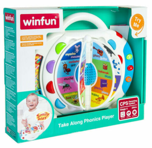 Jouet pédagogique et éducatif catégorie apprentissage des langues avec 4 pages tournantes mettant en valeur l’alphabet/les mots/les objets. Présente 5 modes d’activité : sons de l’alphabet et des lettres, orthographe, jeu de phonétique, jeu de recherche et création musicale 8 mélodies préprogrammées 6 sons d’instruments réalistes : piano, violon, tambour, trompette, cloche et guitare. Poignée intégrée pour une meilleure portabilité